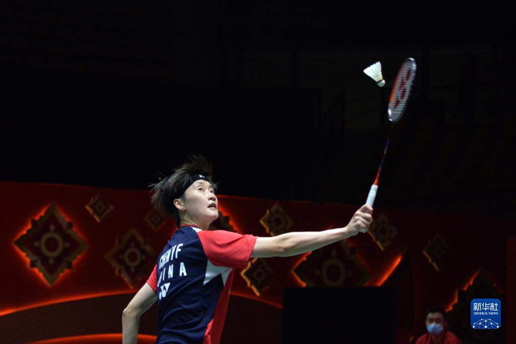 當日,在泰國曼谷舉行的2022世界羽聯(lián)世界巡回賽總決賽女單A組小組賽中,中國選手陳雨菲以2比0戰(zhàn)勝日本選手山口茜。陳雨菲在比賽中回球。新華社發(fā)(拉亨攝)