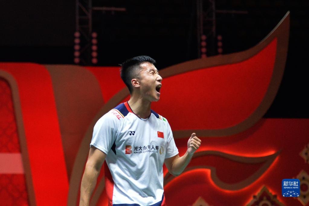 當日,在泰國曼谷舉行的2022世界羽聯(lián)世界巡回賽總決賽男單A組小組賽中,中國選手陸光祖以2比1戰(zhàn)勝印度選手普蘭諾伊。陸光祖在比賽中慶祝。新華社發(fā)(拉亨攝)