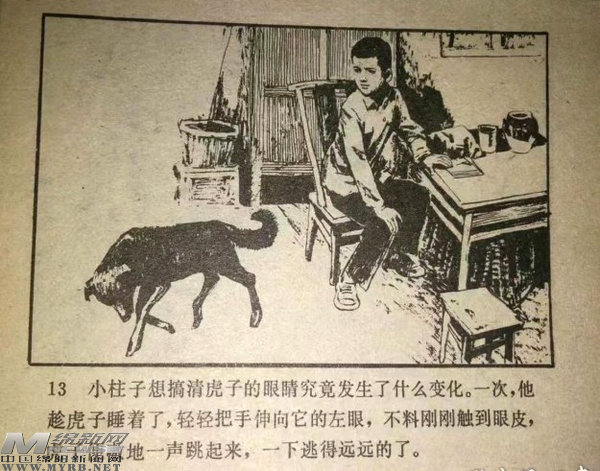 《春潮急》連環(huán)畫雖然沒能面世,但經(jīng)過改編長篇小說的實(shí)踐,我學(xué)習(xí)到不少編寫連環(huán)畫腳本的知識(shí),也積累了一些經(jīng)驗(yàn),便繼續(xù)選取適宜改編的文學(xué)作品,堅(jiān)持業(yè)余時(shí)間進(jìn)行改編。由于學(xué)校工作主要和娃娃打交道,改編就大多涉及兒童、科幻題材和神話故事。如在一篇中篇小說上看到,解放戰(zhàn)爭時(shí)期,解放軍在攻打當(dāng)?shù)卮蟮刂魉拈愅鯙槭椎淖孕l(wèi)隊(duì)中,發(fā)現(xiàn)了一個(gè)叫楊春凌的孩子倒在血泊里,經(jīng)救治春凌當(dāng)了通訊員,在遭遇敵人時(shí),春凌機(jī)智勇敢牽引敵人,掩護(hù)區(qū)隊(duì)長,出色地完成了傳送重要情報(bào)的任務(wù),情節(jié)緊張曲折,便改編成《火紅的戰(zhàn)旗》,由四川人民出版社出版向全國發(fā)行,第一次就印刷了七十多萬冊(cè)。又根據(jù)一個(gè)科學(xué)幻想故事改編成《虎眼之謎》,寫小柱子在自己的愛犬虎子被特務(wù)挖了狗的左眼球裝上微型竊聽器后,配合公安人員將計(jì)就計(jì),在狗眼內(nèi)安裝了微型紅外錄像機(jī),終于粉碎了敵特陰謀,將敵人一網(wǎng)打盡,也由四川人民出版社出版,印發(fā)百萬冊(cè)。我還為當(dāng)時(shí)綿陽縣辦的一張小報(bào)《科學(xué)與藝術(shù)》編寫了科學(xué)幻想連環(huán)畫《假如地球停止轉(zhuǎn)動(dòng)》。七十年代后期恢復(fù)高考考上大學(xué)后,由于忙于學(xué)業(yè),基本無暇顧及連環(huán)畫,但也根據(jù)寫人參姑娘與放牛郎結(jié)成美滿姻緣,勇斗毒蛇精的民間故事,與大學(xué)同學(xué)劉靜松合作改編了敘事詩連環(huán)畫腳本《斬蛇精》,由美術(shù)系教師繪畫,被四川人民出版社出版后受到少年兒童歡迎。