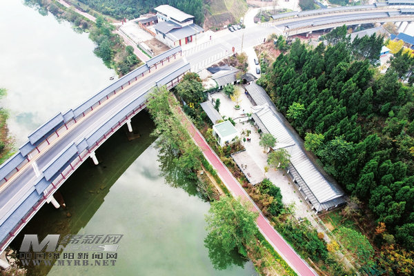 近日,記者驅(qū)車繞過市區(qū)旁的涪江大壩,沿芙蓉溪逆流而上,標有紅黃藍三色車道分隔線的車行道很別致,給寒冬增添了一道暖色。陽光的余暉下,位于游仙區(qū)游仙街道金山村內(nèi)的一處棧道上,給正在拍照的年輕人身上也鍍上了一層金色,遠遠望去,仿佛童話般的世界。