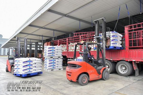 工人駕駛叉車將復(fù)合肥裝上車
