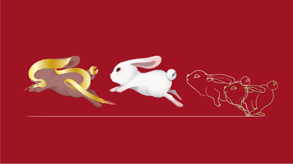 一片吉祥紅,瑞兔化草書。作為中國(guó)探月工程、中國(guó)行星探測(cè)工程的標(biāo)志設(shè)計(jì)者,2023春晚標(biāo)識(shí)的主設(shè)計(jì)師顧永江結(jié)合吉祥物“兔圓圓”的姿態(tài),定格奔躍向上的瞬間,從中國(guó)書法藝術(shù)的草書意象,幻化出一個(gè)全新“卯”字,于靜中生出動(dòng)姿——卯字如開門之形,兔形躍動(dòng)向上,卯兔躍開春門,新一年里踔厲奮發(fā)的新氣象躍然紙上。