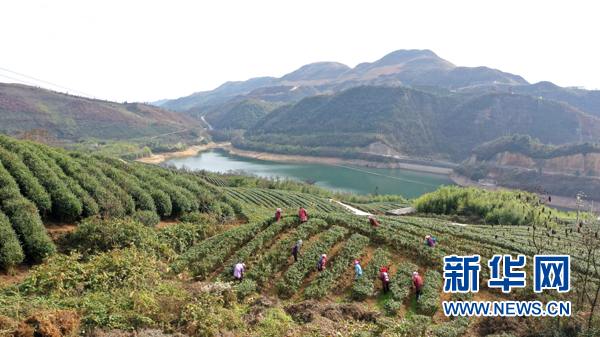 村民在毛尖鎮(zhèn)螺螄殼茶山上管護(hù)茶園。新華網(wǎng) 周遠(yuǎn)鋼 攝
