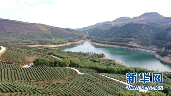 航拍的冬日都勻螺螄殼茶山一景。新華網(wǎng) 周遠(yuǎn)鋼 攝
