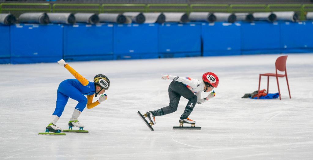 2月11日,在北京市昌平區(qū)世紀(jì)星國際冰雪體育中心,參加集訓(xùn)的小隊員們進(jìn)行短道速滑訓(xùn)練。新華社記者才揚攝