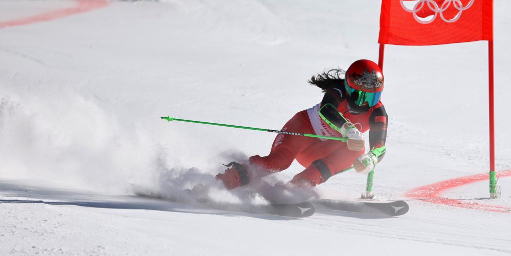 2月20日,中國隊選手孔凡影在北京冬奧會高山滑雪混合團(tuán)體項目比賽中。新華社記者陳斌攝