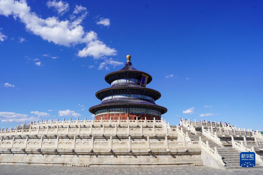 這是藍(lán)天白云下的北京天壇祈年殿(2021年6月4日攝)。新華社記者 陳曄華 攝