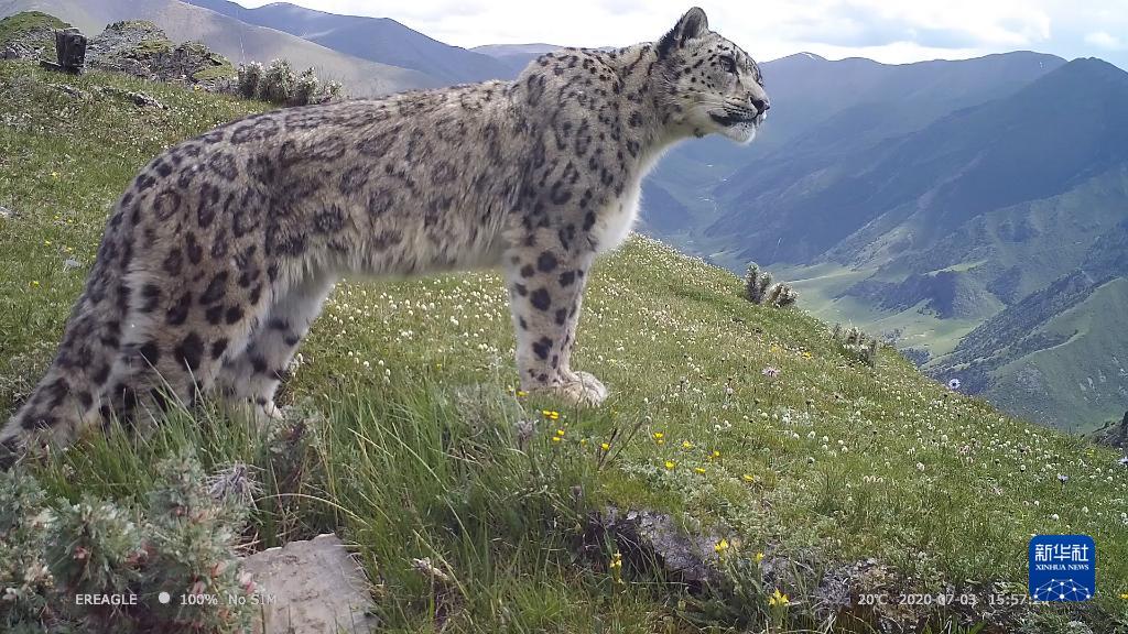 這是三江源國家公園內(nèi)紅外相機(jī)捕捉到的雪豹(2020年7月3日攝)。新華社發(fā)(三江源國家公園管理局供圖)