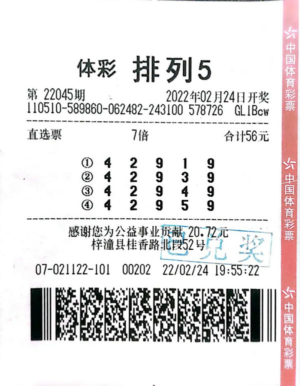 購(gòu)彩者每購(gòu)買一注2元的體彩“排列5”