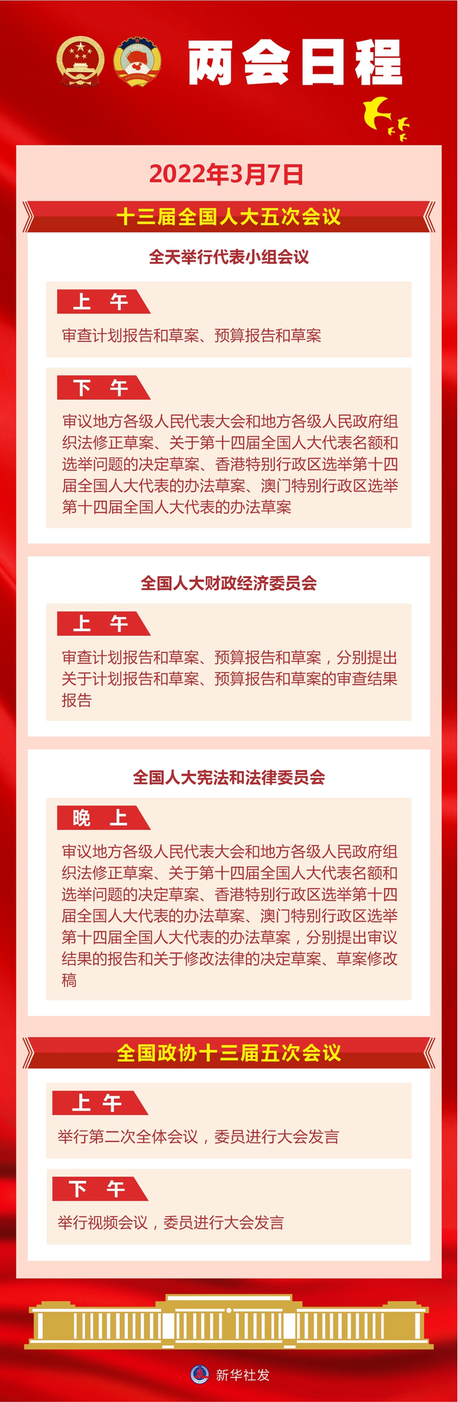 (兩會(huì)日程預(yù)告)3月7日:人代會(huì)審查計(jì)劃、預(yù)算報(bào)告 審議地方組織法修正草案 政協(xié)委員進(jìn)行大會(huì)發(fā)言