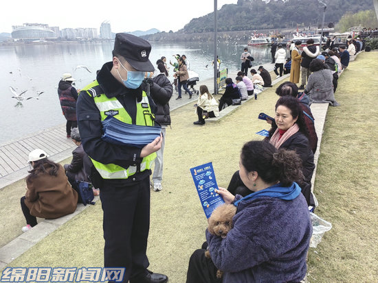 綿陽新聞網(wǎng)訊 “你好女士,你給愛犬戴上了狗鏈,很不錯。”“大爺,廣場這么多人,您要將愛犬的排泄物及時清理。”3月3日下午,市公安局特巡警支隊(duì)巡邏一大隊(duì)民警聯(lián)合涪城區(qū)綜合行政執(zhí)法局、城廂派出所、城廂街道開展文明養(yǎng)犬宣傳行動,引導(dǎo)市民依法文明養(yǎng)犬。