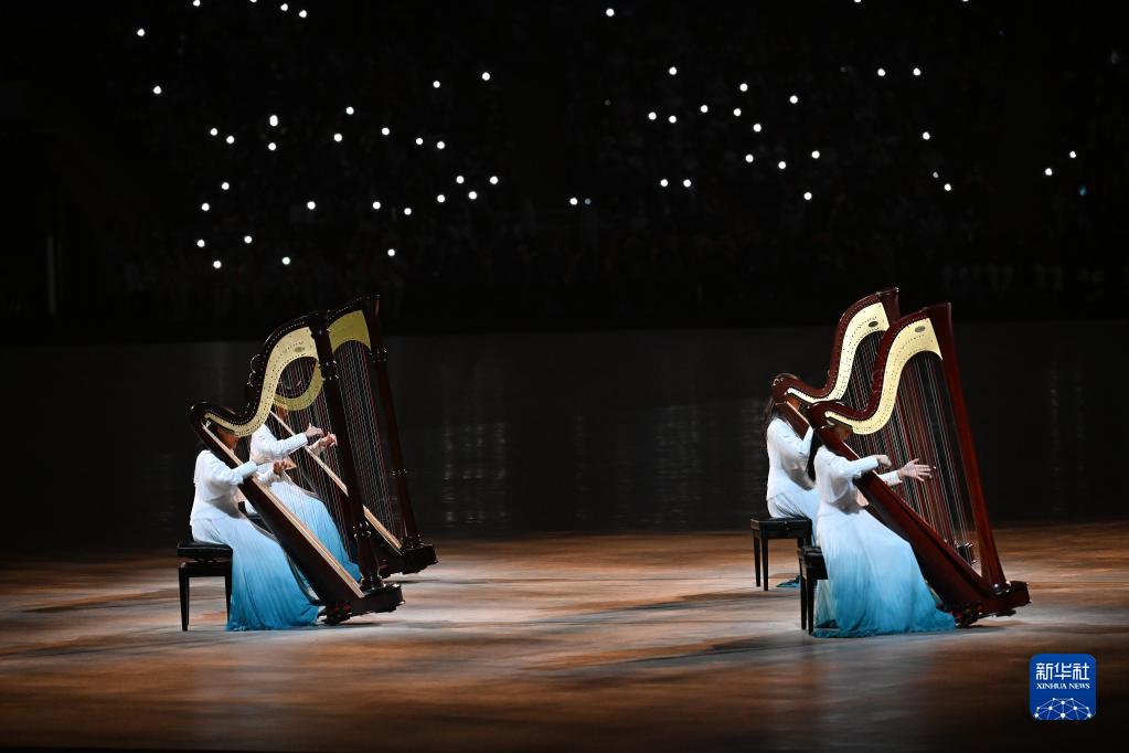 在開場的《高光時刻》環(huán)節(jié),伴隨著4位豎琴演奏者演繹的德國作曲家門德爾松創(chuàng)作的《乘著歌聲的翅膀》,冬殘奧會開幕后9天賽事的精彩瞬間在“留聲機”中浮現。沈晨說:“很多殘疾人雖然身體殘缺,但是心在飛翔,所以我們選擇了這首《乘著歌聲的翅膀》。”