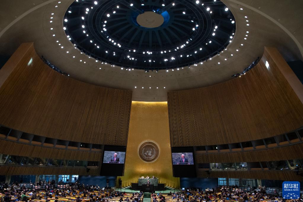 3月14日,在位于紐約的聯(lián)合國總部,聯(lián)合國秘書長古特雷斯在聯(lián)合國婦女地位委員會(huì)第66屆會(huì)議上致辭。新華社發(fā)(聯(lián)合國供圖/埃瑟金德爾·德貝卜攝)