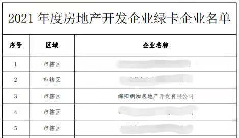 信息來(lái)源:綿陽(yáng)市住房和城鄉(xiāng)建設(shè)委員會(huì):《關(guān)于2021年房地產(chǎn)“服務(wù)綠卡”企業(yè)評(píng)定情況的公示》zjw.my.gov.cn/xwdt/gsxx/26748681.html