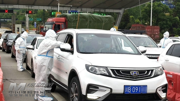 在金家林收費(fèi)站,記者看到,這里的核酸便民采樣點(diǎn)設(shè)有兩個窗口,工作人員與志愿者正在引導(dǎo)來(返)綿人員間隔1米排隊(duì),等候采樣。據(jù)介紹,這個點(diǎn)每天大約要為1500人次進(jìn)行核酸采樣。