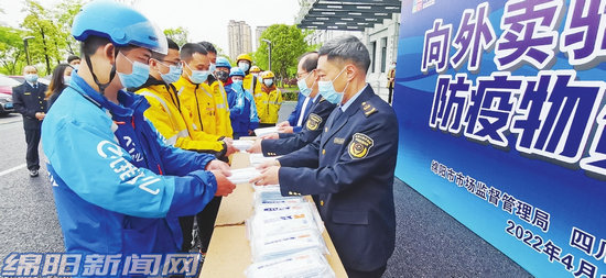 “我們每天都不停地穿梭在城市的大街小巷,口罩是必備的防疫物資,由于佩戴的口罩時間不能太長,因此更換較為頻繁,非常感謝市場監(jiān)管局和愛心企業(yè)對我們外賣小哥出行防疫安全的關(guān)注和愛護。”美團外賣小哥趙亮說。(張根 綿報融媒記者 任明勇 文/圖)