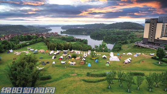 記者了解到,“五一”假期,在綿陽周邊的近郊野外,帳篷如雨后春筍般“盛開”于草坪。素有綿陽“后花園”之稱的仙海,在今年“五一”盡顯城市近郊游風(fēng)騷,充分利用其轄區(qū)的酒店,將露營營地與酒店服務(wù)相結(jié)合,推出“露營+玩樂”“露營+親子”等多種項目。“五一”假期5天,仙海共接待10.23萬游客,而接待露營游客占比25%。