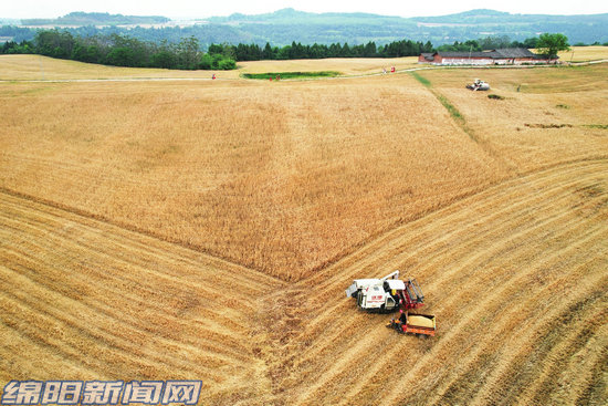 游仙仙鶴鎮(zhèn)帽兒山“高山麥場(chǎng)”里,顆粒飽滿、沉甸甸的麥穗壓彎了枝頭,陣陣麥香撲面而來(lái),吸引了不少游客前來(lái)拍照。梓潼各地田園麥浪翻滾,麥粒飄香,滾滾麥浪之間,機(jī)器來(lái)回穿梭,收割、脫粒、裝運(yùn)……干部群眾格外忙碌,他們利用聯(lián)合收割機(jī)搶收成熟的小麥,實(shí)現(xiàn)24萬(wàn)畝小麥顆粒歸倉(cāng)。