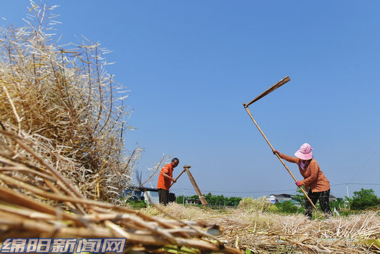 安州、游仙、梓潼等地油菜種植區(qū),油菜籽迎來(lái)大豐收。藍(lán)天下,密密麻麻的菜籽角結(jié)實(shí)飽滿,村民穿梭在地頭田間,連枷、鐮刀、收割機(jī)齊上陣,豐收的喜悅掛滿曬黑的臉龐,與大片田地交織成夏日最動(dòng)人的鄉(xiāng)村畫(huà)卷。