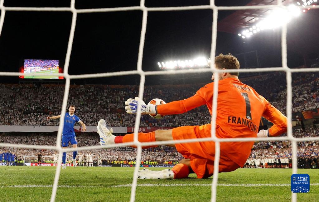 當(dāng)日,在西班牙塞維利亞舉行的2021-2022賽季歐羅巴聯(lián)賽決賽中,德甲法蘭克福隊(duì)與蘇超格拉斯哥流浪者隊(duì)在常規(guī)時(shí)間和加時(shí)賽中戰(zhàn)成1比1。最終通過點(diǎn)球大戰(zhàn),法蘭克福隊(duì)以總比分6比5獲勝,奪得冠軍。