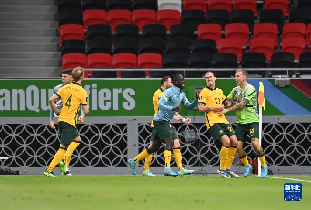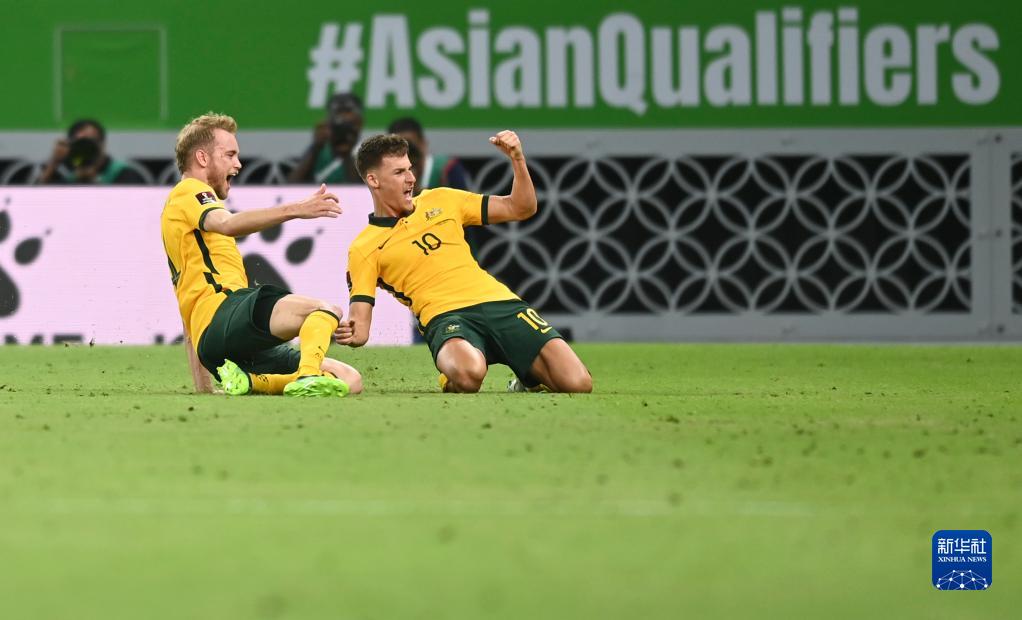 當日,在卡塔爾首都多哈進行的2022世界杯預選賽亞洲區(qū)附加賽中,澳大利亞隊以2比1戰(zhàn)勝阿聯(lián)酋隊,晉級洲際附加賽,將與南美洲的秘魯隊爭奪世界杯正賽的席位。
