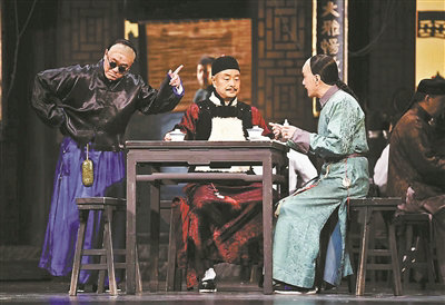 何冰飾演劉麻子(左)、濮存昕(中)飾演常四爺、馮遠(yuǎn)征(右)飾演松二爺