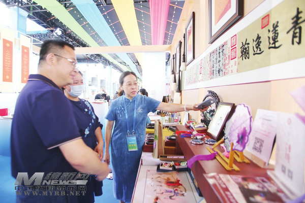 不止特色農產品暢銷,精致獨特的文創(chuàng)產品也深受廈門消費者喜愛。在李白詩意繡展位上,現(xiàn)場展示的畫屏、掛畫、背包、零錢袋、工藝品等產品種類繁多,既有巨幅條屏,也有袖珍小件,觀賞性與實用性兼?zhèn)涞木浪囆g品吸引不少人圍觀,買來收藏。工作人員介紹,“李白詩意繡繡院在江油市青蓮鎮(zhèn)粉竹樓,當?shù)亓羰貗D女和殘疾人傳承蜀繡技藝,弘揚李白文化。”