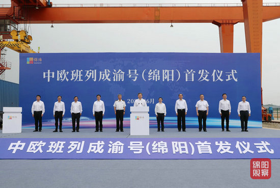 綿陽新聞網(wǎng)訊 6月20日,中歐班列成渝號(綿陽)首發(fā)儀式在皂角鋪鐵路物流基地舉行。省委常委、市委書記曹立軍宣布發(fā)車,省商務廳黨組書記、廳長曾卿出席并致辭。成都海關一級巡視員續(xù)效東,中國鐵路成都局集團有限公司副總經(jīng)理彭強出席。