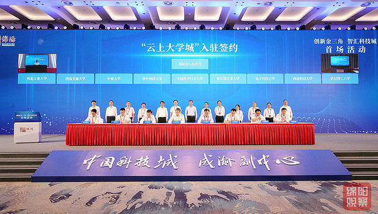 隨后,舉行了簽約儀式,綿陽市政府及有關(guān)方面分別就“云上大學(xué)城”入駐、區(qū)域合作及“招院引所”項目、創(chuàng)新平臺等簽約。