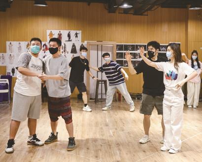 “這一段開始要吸氣說話,表現(xiàn)內(nèi)在的興奮感。”“戲劇注重臺詞的節(jié)奏,內(nèi)心不要把節(jié)奏弄亂。”“所有的歌和舞都要在戲劇里,舞蹈就是人物內(nèi)心的美學(xué)外化。”隨著日常生活有序回歸,按下暫停鍵數(shù)月的開心麻花再度重啟,兩個排練廳里熱火朝天。