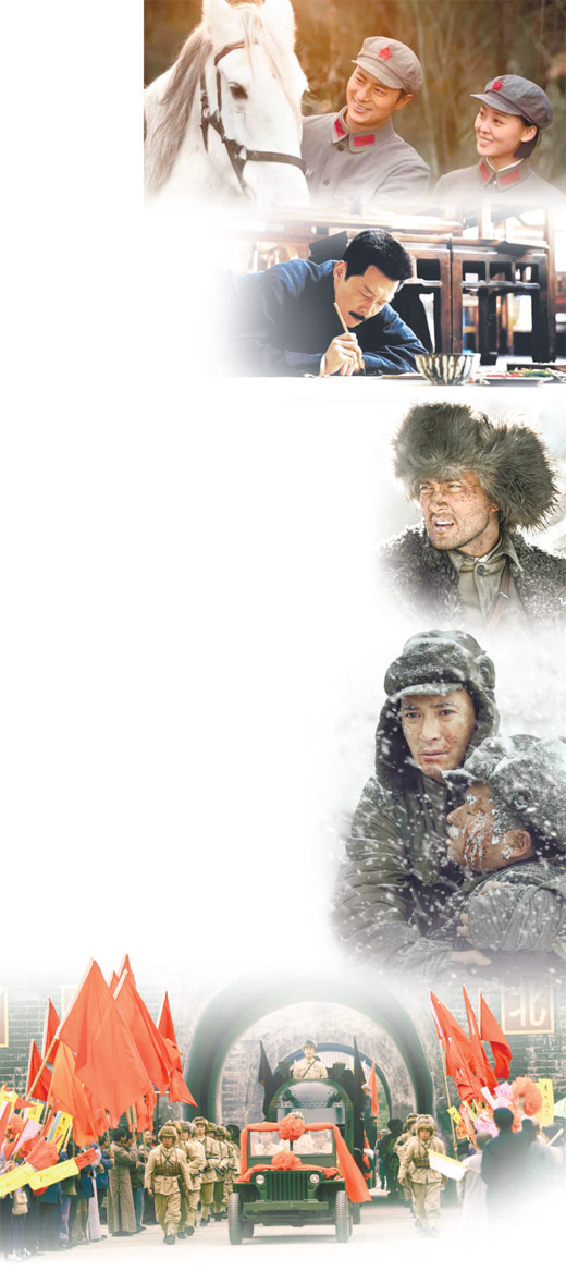 圖片自上而下分別為電視劇《可愛(ài)的中國(guó)》《覺(jué)醒年代》《光榮與夢(mèng)想》《跨過(guò)鴨綠江》《百煉成鋼》劇照。