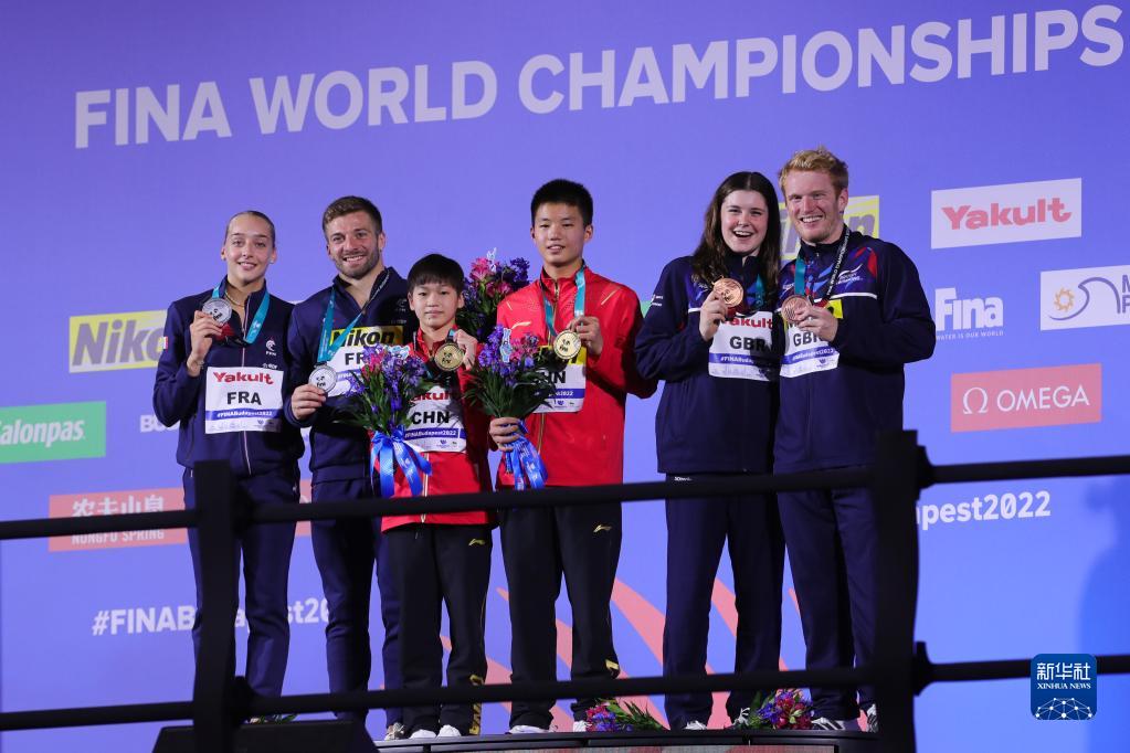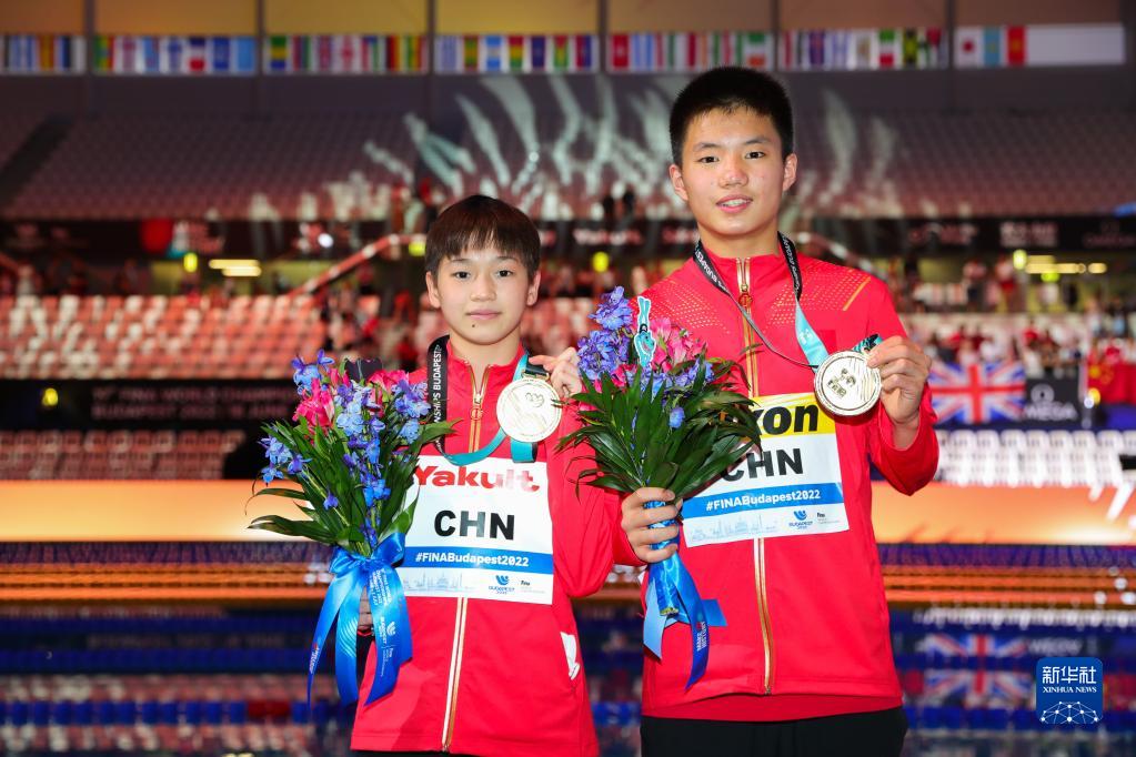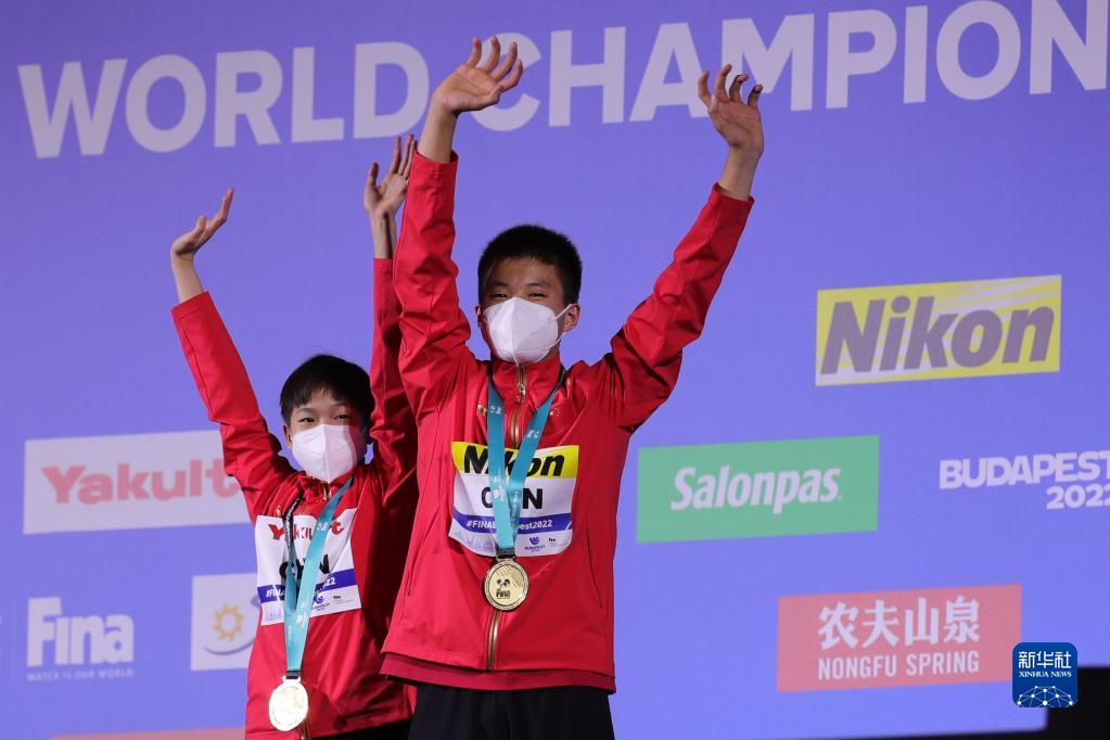 當(dāng)日,在匈牙利布達(dá)佩斯舉行的2022年世界游泳錦標(biāo)賽跳水混合全能決賽中,中國(guó)組合全紅嬋/白鈺鳴奪得冠軍。