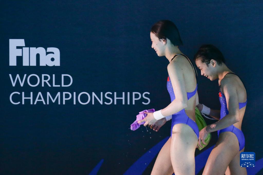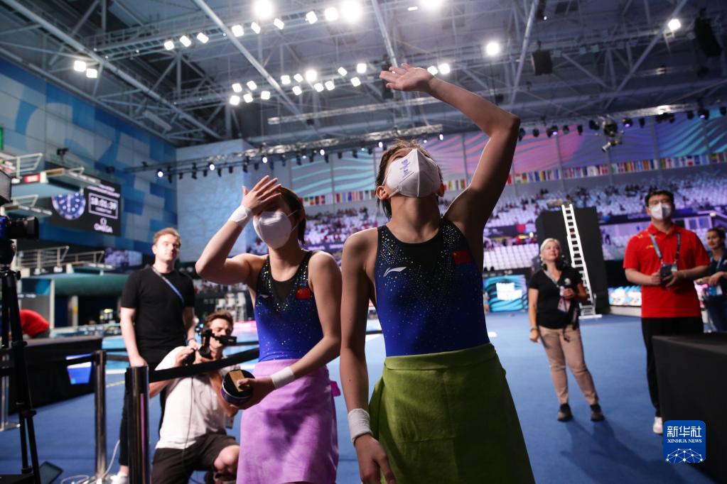 6月30日,陳芋汐(左)/全紅嬋在比賽后。新華社記者 鄭煥松 攝
