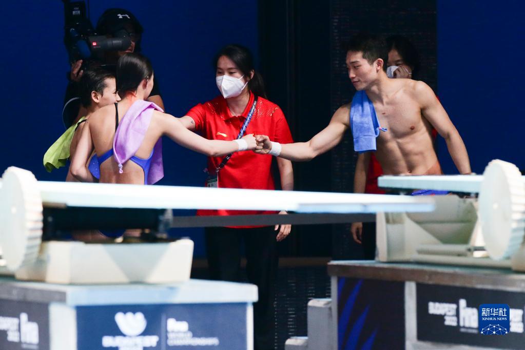 當(dāng)日,在匈牙利布達(dá)佩斯舉行的2022年世界游泳錦標(biāo)賽跳水項(xiàng)目女子雙人10米臺(tái)決賽中,中國(guó)選手陳芋汐/全紅嬋奪得冠軍。