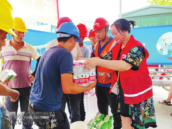 7月7日,涪城區(qū)華豐社區(qū)新時(shí)代文明實(shí)踐的志愿者們走進(jìn)工地,為奮戰(zhàn)在一線的建筑工人送去了礦泉水、藿香正氣液等防暑降溫物品?!?潘曉莉 綿報(bào)融媒記者 陳冬冬 攝)