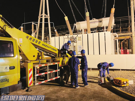 綿陽(yáng)新聞網(wǎng)訊 隨著夏季用電高峰期到來(lái),國(guó)網(wǎng)綿陽(yáng)供電公司正扎實(shí)推進(jìn)迎峰度夏保供電工作,通過(guò)一系列有力舉措,確保電力可靠供應(yīng)和電網(wǎng)安全運(yùn)行。7月9日凌晨,國(guó)家電網(wǎng)綿陽(yáng)供電公司的工作人員利用夜間負(fù)荷低谷時(shí)段,對(duì)220千伏河西變電站兩臺(tái)主變壓器進(jìn)行臨時(shí)消缺。