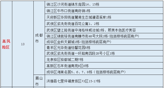 各地要加強(qiáng)對(duì)7日內(nèi)有成都市高中低風(fēng)險(xiǎn)區(qū)、7月13日以來有眉山市洪雅縣高中低風(fēng)險(xiǎn)區(qū)、7月15日以來有樂山市市中區(qū)旅居史的人員排查,并實(shí)施分類管理。公眾如近期有相關(guān)地區(qū)旅居史,要第一時(shí)間向所在社區(qū)(村)報(bào)備,并配合做好各項(xiàng)防疫措施。