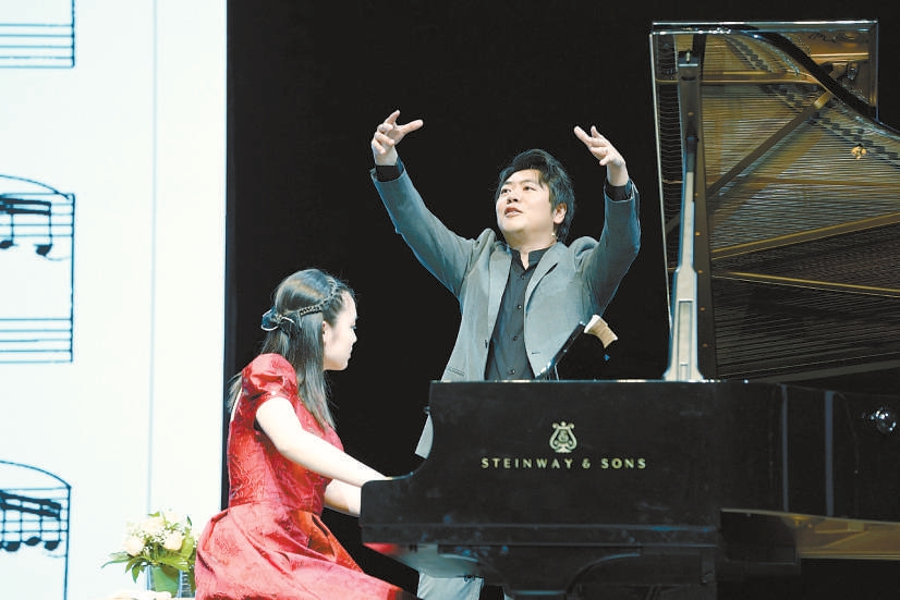 音樂的要點往往微妙難言,兩個多小時的大師課里,郎朗夾雜著各種“奇妙”擬聲詞的糾正相當細致,言語難以準確描繪時,他或是聲形并茂地在空中比出旋律的線條,或是干脆摸上琴鍵,做起示范。“我很喜歡上大師課,喜歡和更多人分享自己的感悟。”郎朗說,“我一直希望,能用生活中可以感受到的方式來幫助孩子們理解音樂,讓他們在練琴時更清楚地找到目標,而不總是‘被迫營業(yè)’。我一直期待,能為國家培養(yǎng)更多走向國際的音樂人才。” (文/記者 高倩 攝 方非)