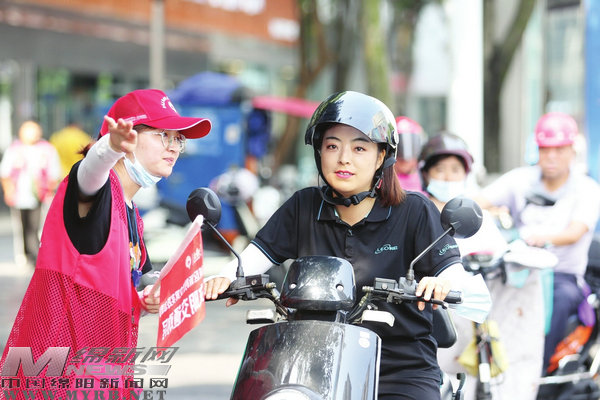 “妹妹,請你把頭盔戴好,這個路口車流量大,戴好頭盔才能保障你的安全。”在富樂大橋十字路口,交警正在勸導(dǎo)電動車駕駛員規(guī)范佩戴頭盔。一旁的志愿者也引導(dǎo)著來往人群和車輛按交通規(guī)則有序通行,原本繁忙的十字路口,在交警和志愿者們的引導(dǎo)下,變得秩序井然。