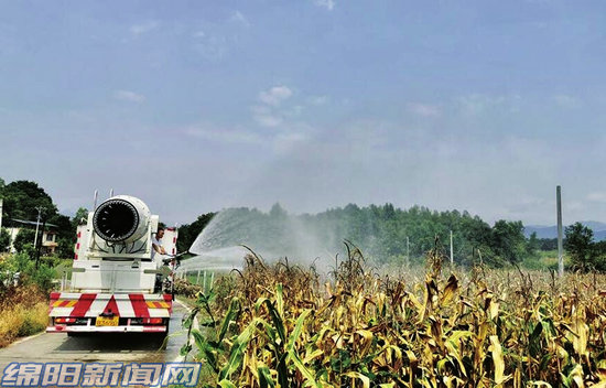 8月18日,在北川永昌鎮(zhèn)高安村,一臺(tái)滿(mǎn)載著15噸水的環(huán)衛(wèi)灑水車(chē)平穩(wěn)地行駛在村道上,一股股清流灑進(jìn)干涸的玉米地。(云峰 綿報(bào)融媒記者 李春梅 攝影報(bào)道)