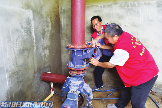 游仙區(qū)忠興鎮(zhèn)永佛村“堰塘水保姆”對(duì)紅旗提灌站設(shè)備進(jìn)行日常檢查維護(hù)。(綿報(bào)融媒記者 王勇 攝)
