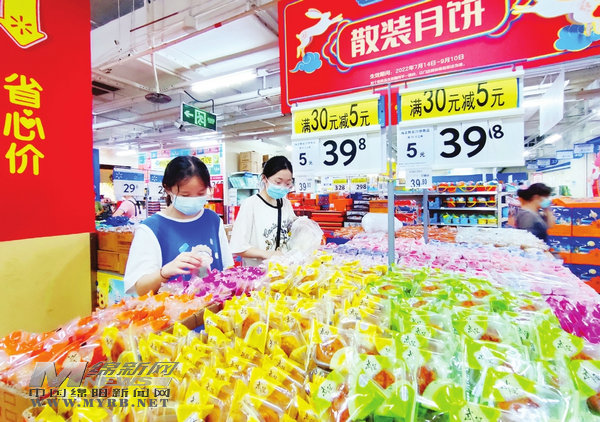 在該超市的熟食專(zhuān)區(qū),記者還發(fā)現(xiàn)了價(jià)格實(shí)惠的手工月餅銷(xiāo)售點(diǎn),一個(gè)個(gè)新鮮出爐的現(xiàn)烤月餅,散發(fā)著濃濃的香味,吸引消費(fèi)者紛紛品嘗購(gòu)買(mǎi)。