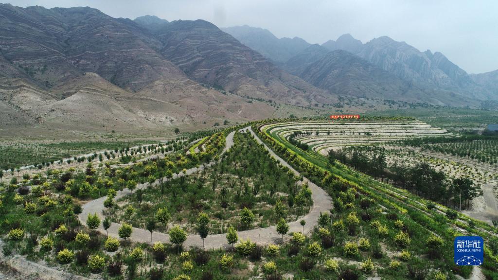 這是位于寧夏石嘴山市平羅縣崇崗鎮(zhèn)的賀蘭山東麓黃屯子生態(tài)修復(fù)治理工程(2022年8月2日攝)。新華社記者 王鵬 攝
