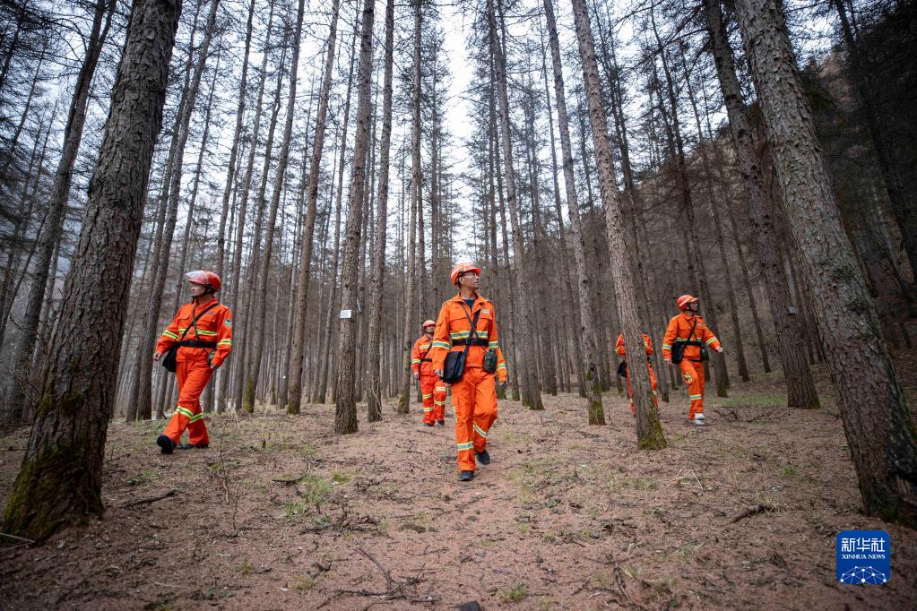 寧夏固原市六盤山林業(yè)局二龍河國有林場的工作人員在所轄林區(qū)進(jìn)行防火巡護(hù)巡查(2022年3月17日攝)。新華社記者 楊植森 攝