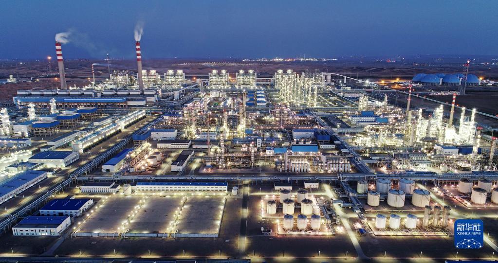 這是國家能源集團(tuán)寧夏煤業(yè)公司400萬噸煤制油項(xiàng)目夜景(2022年6月22日攝,無人機(jī)照片)。新華社記者 王鵬 攝
