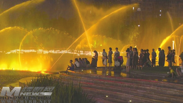 北川 音樂噴泉“唱響”紅歌