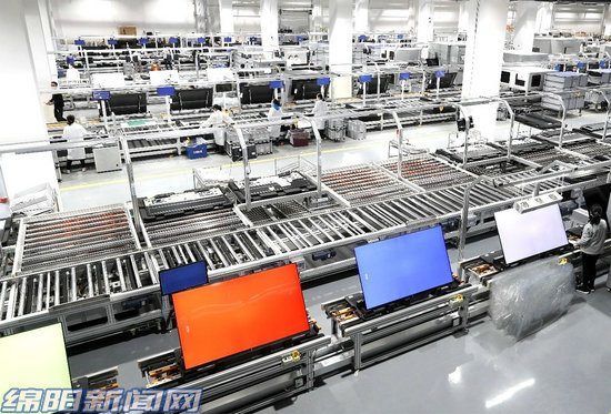 長虹智慧顯示工廠數(shù)字化智能生產(chǎn)線(視覺綿陽資料圖片)
