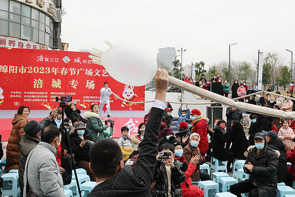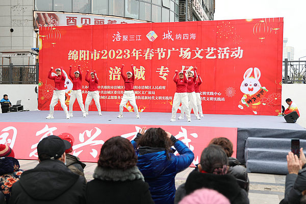 1月25日,大年初四,在綿陽(yáng)涪城區(qū)西河路社區(qū)陽(yáng)光曼哈頓廣場(chǎng),2023年春節(jié)廣場(chǎng)文藝演出涪城專場(chǎng)走進(jìn)社區(qū)。來(lái)自古井社區(qū)、南山社區(qū)、御營(yíng)社區(qū)、紅星社區(qū)、西河路社區(qū)等社區(qū)居民歡聚一堂,為轄區(qū)居民送上了“文化大餐”,現(xiàn)場(chǎng)居民大聯(lián)歡,熱熱鬧鬧過(guò)新年。