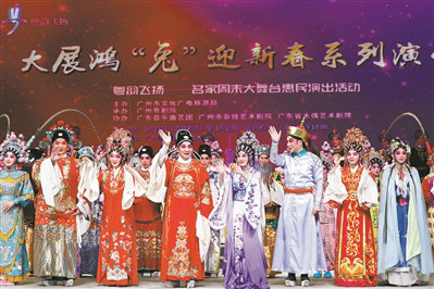廣東粵劇院也連續(xù)獻演系列“春班演出”, 陪伴廣州市民歡度春節(jié)。1月26日至2月2日,廣東粵劇院獻上八場賀歲大戲。在廣東粵劇藝術中心,廣東粵劇院一級演員、文華表演獎、中國戲劇梅花獎獲得者曾小敏,一級演員、中國戲劇梅花獎獲得者蔣文端、彭慶華,一級演員文汝清、林家寶、李虹陶、王燕飛、黃春強、冼鑒棠、吳澤東、洪梓鏵、梁曉瑩、朱紅星等,名家新秀輪番登臺,為觀眾戲迷獻演《倫文敘傳奇》《觀音情度韋陀天》《四大名著·選粹》《柳毅奇緣》《紅絲錯》《青春飛揚賀新年——青年折子戲專場》《寶蓮燈》等節(jié)目。