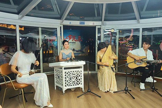 這是天津海河游船上舉行的“海上聲民樂(lè)”演出。新華社記者 宋瑞 攝